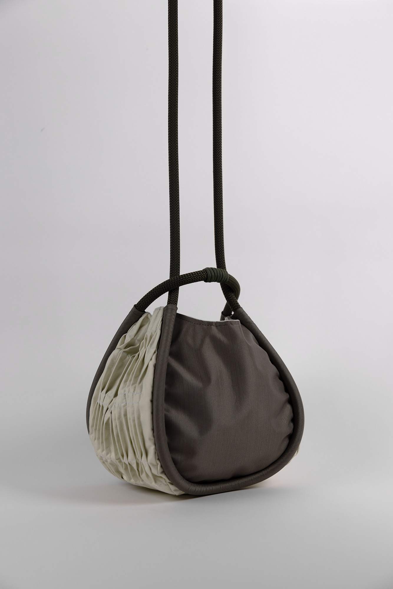 This bag is a form exploration that incorporates biophilic concepts. Biophilic design is a methodology typically applied to buildings and landscapes that nurtures the relationship between people and nature. It explores the healing and calming properties of nature and proposes that humans are innately connected to it. By integrating different forms of natural mimicry through surface manipulation of fabric, I was able to create a bag that carries a soothing, calming energy. In a digital world of constant stimulation, this bag is intended as a call to go outside, to retreat, and to reconnect with nature.