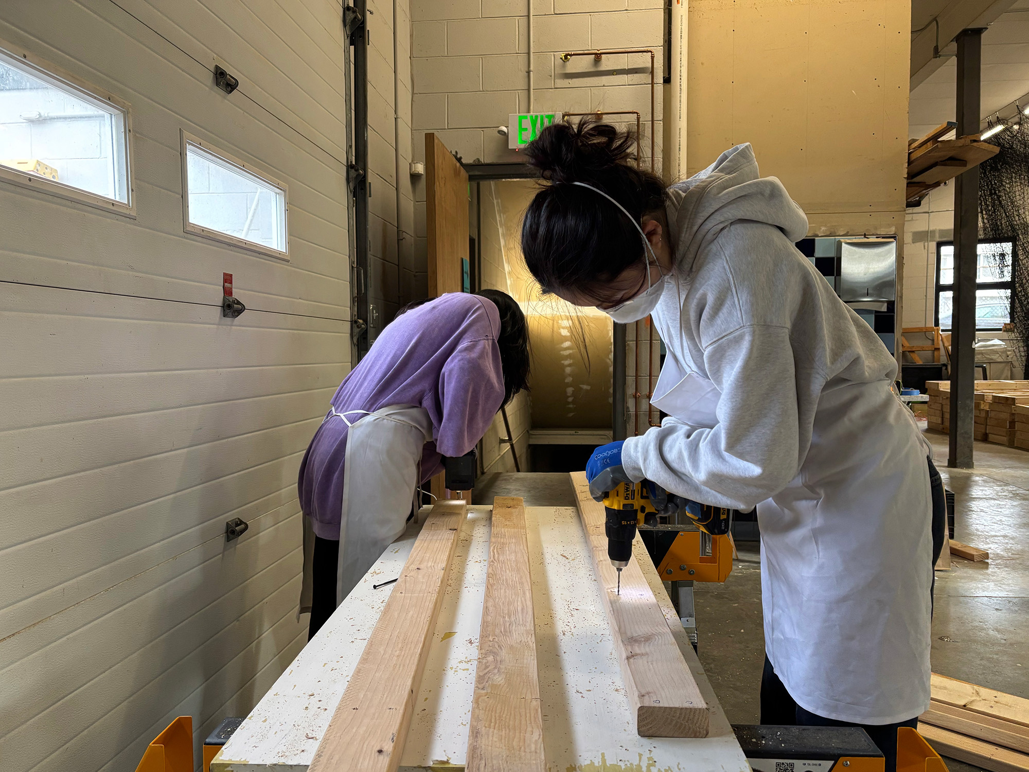We were able to fabricate three STEWPS steps, each measuring 9 × 9 feet. This was my first time working on a large-scale fabrication project, and it was extremely rewarding. Through this experience, I learned the importance of community in conducting projects—not only did our studio participate, but the open studios we hosted also engaged the broader Providence community in our building process. Below is a small look into what a day in the studio looked like!